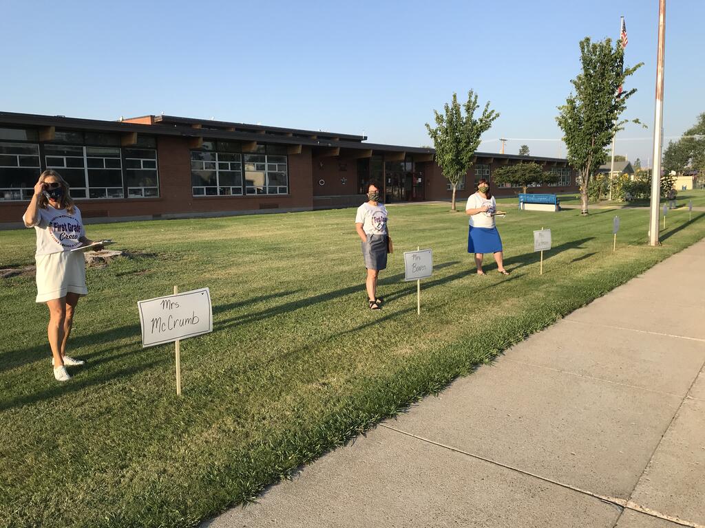 Our first day back to school, first half of our first grade kids back and kindergarten Round Up!